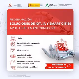 La Consejería de Empleo, Empresa y Trabajo Autónomo ha abierto el plazo de inscripción para una nueva edición del curso gratuito 'Programación para soluciones de IoT, IA y smart city aplicables a entornos 5G', una "formación puntera" que se impartirá en Jaén a partir del 28 de octubre.