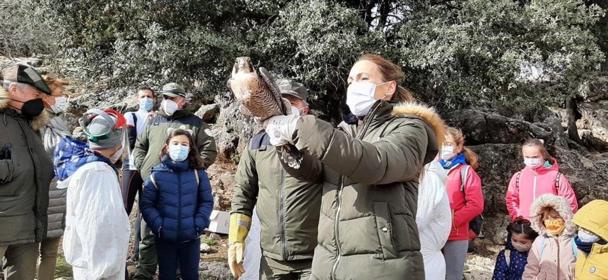 La segunda de las iniciativas se ha llevado a cabo en el Puerto de las Palomas, en La Iruela (Jaén), para mantener una actividad de sensibilización y suelta de aves con alumnado del Colegio Público Rural Alto Guadalquivir y a la que también han asistido autoridades locales.