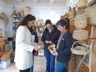 La artesana disfruta no solo del resultado, también y sobre todo del proceso completo que realiza sin prisa pero sin pausa con cada pieza artesana. A su vez, hace talleres y cursos en los que enseña a todo tipo de públicos a trabajar el esparto.
