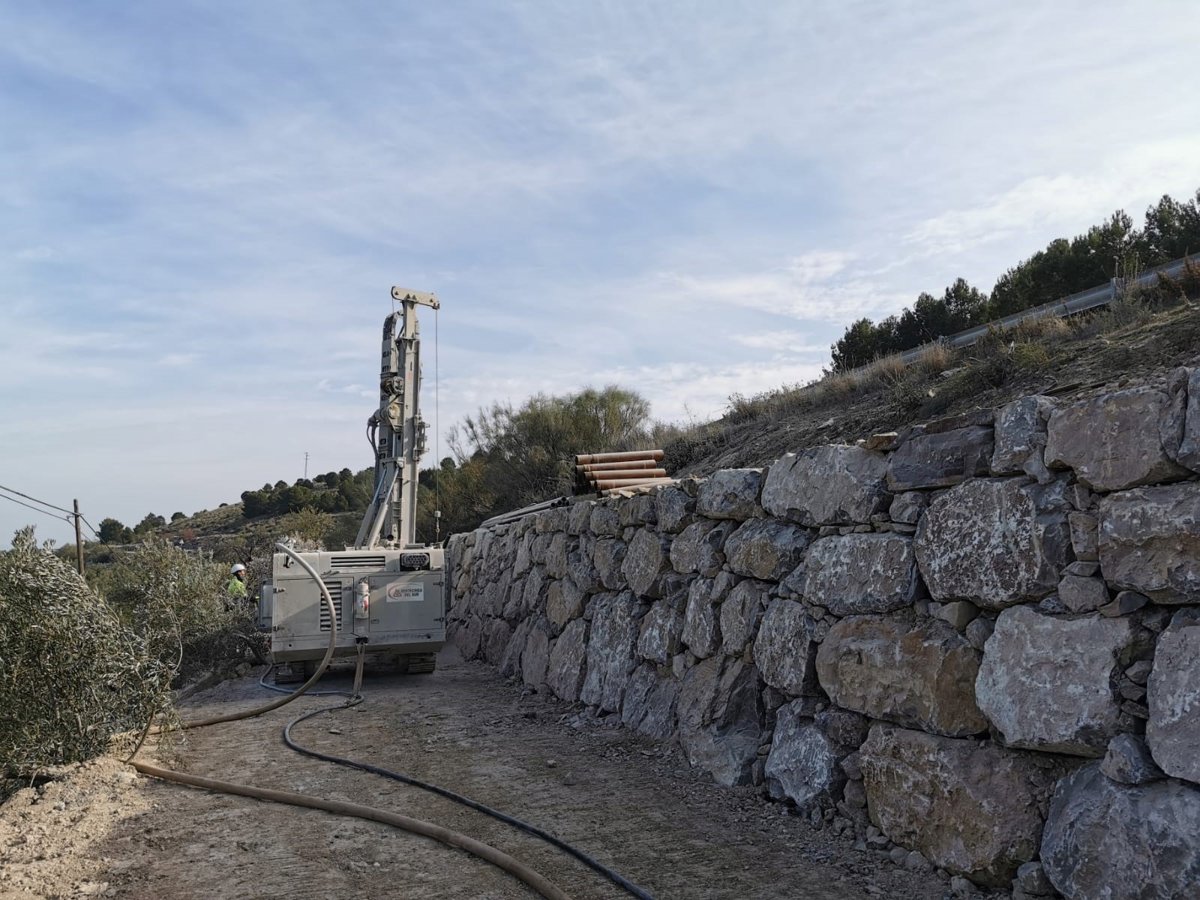 En el punto kilométrico 16,6, se ha realizado una contención y estabilización del deslizamiento de ladera-terraplén. Está compuesta por un muro de contención de escollera en el pie del terraplén cuyo cimiento está reforzado por una pantalla de micropilotes.
