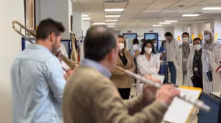 El Hospital Universitario de Jaén está desarrollando sesiones de música en directo. Se trata de un proyecto de colaboración entre la Banda Municipal de Jaén y el servicio de Oncología Médica de este centro sanitario, en el que, de forma regular y progresiva, acudirán a Hospital de Día y sala de hemodiálisis músicos a modo de dúos o tríos, para amenizar las sesiones de tratamiento en estas dependencias.