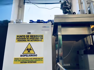 El sistema instalado, denominado Crioges, además de anular las emisiones de los puntos de residuos peligrosos, integra un procedimiento purificador mediante fotocatálisis, que higieniza de manera ininterrumpida el espacio, sustituyendo los focos contaminantes por estaciones de bioseguirdad. De este modo, se crean anillos de higienización ambiental permanente y se reduce al máximo la presencia de microorganismos nocivos en suspensión y agentes químicos en el ambiente.