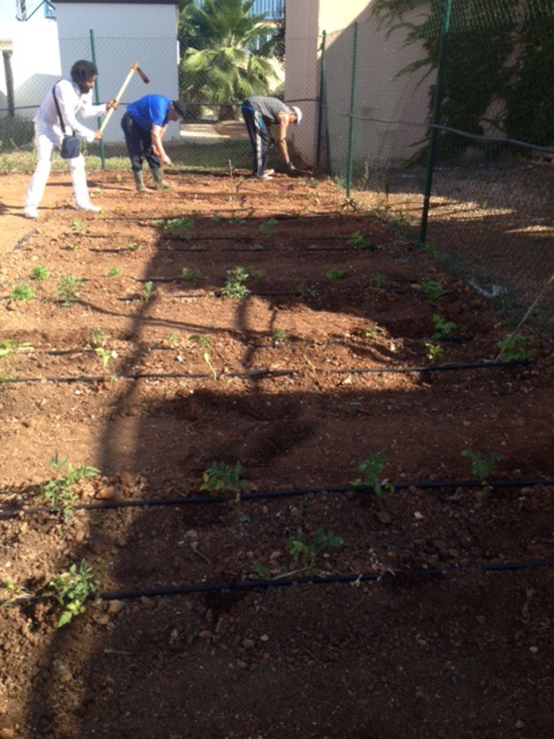 El trabajo en este huerto ecológico de los pacientes de esta unidad de gestión clínica (UGC) de salud mental, que se lleva a cabo en grupos, consiste en conocer y elegir el tipo de cultivo, comprar los materiales necesarios y preparar el terreno para sembrarlos, y cuidar después las plantas que crezcan.