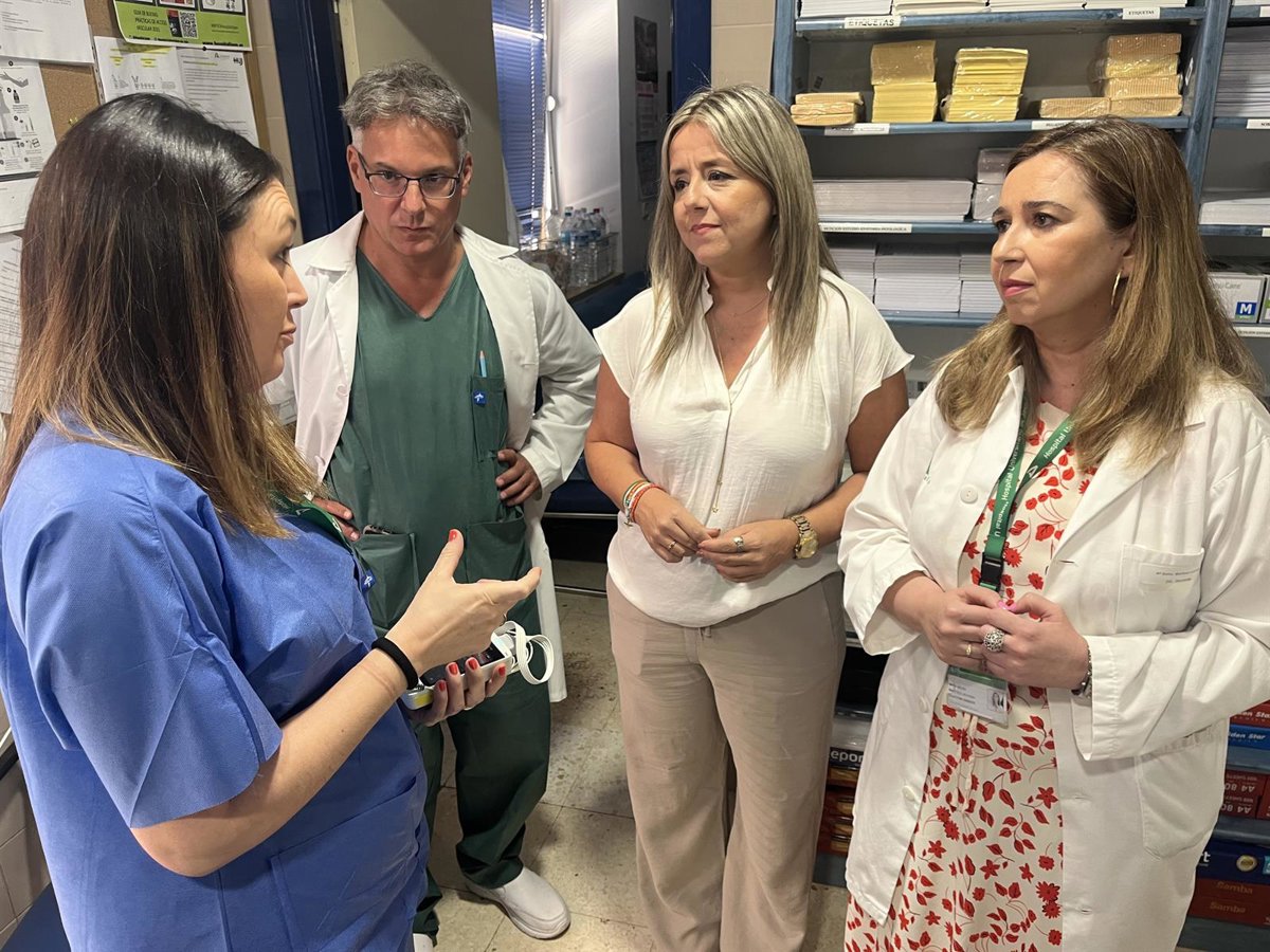 La delegada territorial de Salud y Consumo, Elena González, ha visitado el centro para conocer estos equipos, junto a la directora gerente del Hospital Universitario de Jaén, María Belén Martínez, y el director de la Unidad de Cardiología, Juan Carlos Fernández.