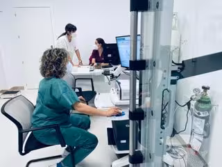 Para ello son dos facultativos destinados a este fin, que desarrollan su trabajo en el seguimiento, diagnóstico y manejo terapéutico, además de seguimiento clínico, donde se valora la función pulmonar, espirometrías, medición de oxígeno nítrico en aire salado.