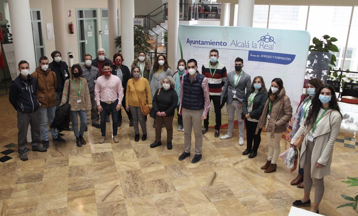 Contratados en la iniciativa AIRE en Alcalá la Real, junto al alcalde, Marino Aguilera. - JUNTA