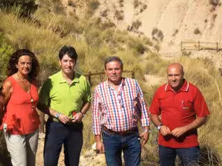 El delegado territorial de Medio Ambiente y Ordenación del Territorio, Juan Eugenio Ortega, junto a las alcaldes de Huesa e Hinojares, Ángel Padilla y Marón Martínez, respectivamente, ha podido conocer las mejoras que se acometidas en estas vías pecuarias.