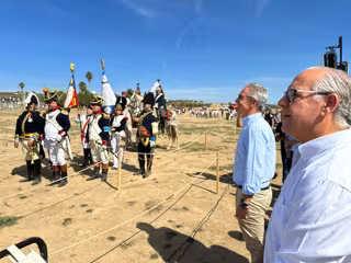 El delegado del Gobierno de la Junta de Andalucía, Jesús Estrella, ha asistido a la recreación histórica de la Batalla de Bailén (Jaén) junto al delegado territorial de Turismo, Cultura y Deporte, José Ayala, así como por el alcalde del municipio, Luis Mariano Camacho. La Junta colabora con este evento en el que más de 300 recreadores han recordado la gesta que aconteció en tierras bailenenses en 1808 y que supuso la primera derrota de los ejércitos napoleónicos en campo abierto.