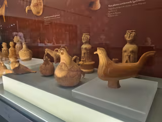Las formas representadas por los participantes van desde palomas a gallos, pasando por jabalíes. Junto a estos askoi se ha trabajado un vaso muy especial que se identifica con una diosa que surge de la tierra a la que se une una figura de pequeño tamaño subida a un taburete, todo ello sobre una cabeza de lobo. Talleres Rakú, de Dionisia Rodríguez, ha sido el lugar donde, tras la elaboración de estos recipientes, se ha llevado a cabo la cocción de los mismos.
