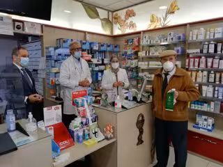 La Consejería de Salud y Familias recuerda a los mayores de 65 años y pensionistas de la provincia la importancia de recoger sus mascarillas quirúrgicas a través de las oficinas de farmacia. Así lo ha hecho este domingo durante la visita a una oficina de farmacia la delegada territorial de Salud y Familias, Trinidad Rus, junto al presidente del Colegio de Farmacéuticos, Juan Pedro Rísquez.