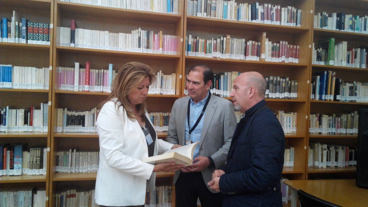 La delegada territorial de Cultura, Turismo y Deporte de la Junta en Jaén, Pilar Salazar, ha hecho entrega de una colección de libros para la ampliación de la biblioteca del Centro Penitenciario de Jaén en el transcurso de una visita a sus instalaciones en la que ha estado acompañada por el director de esta institución, Juan Mesa.
