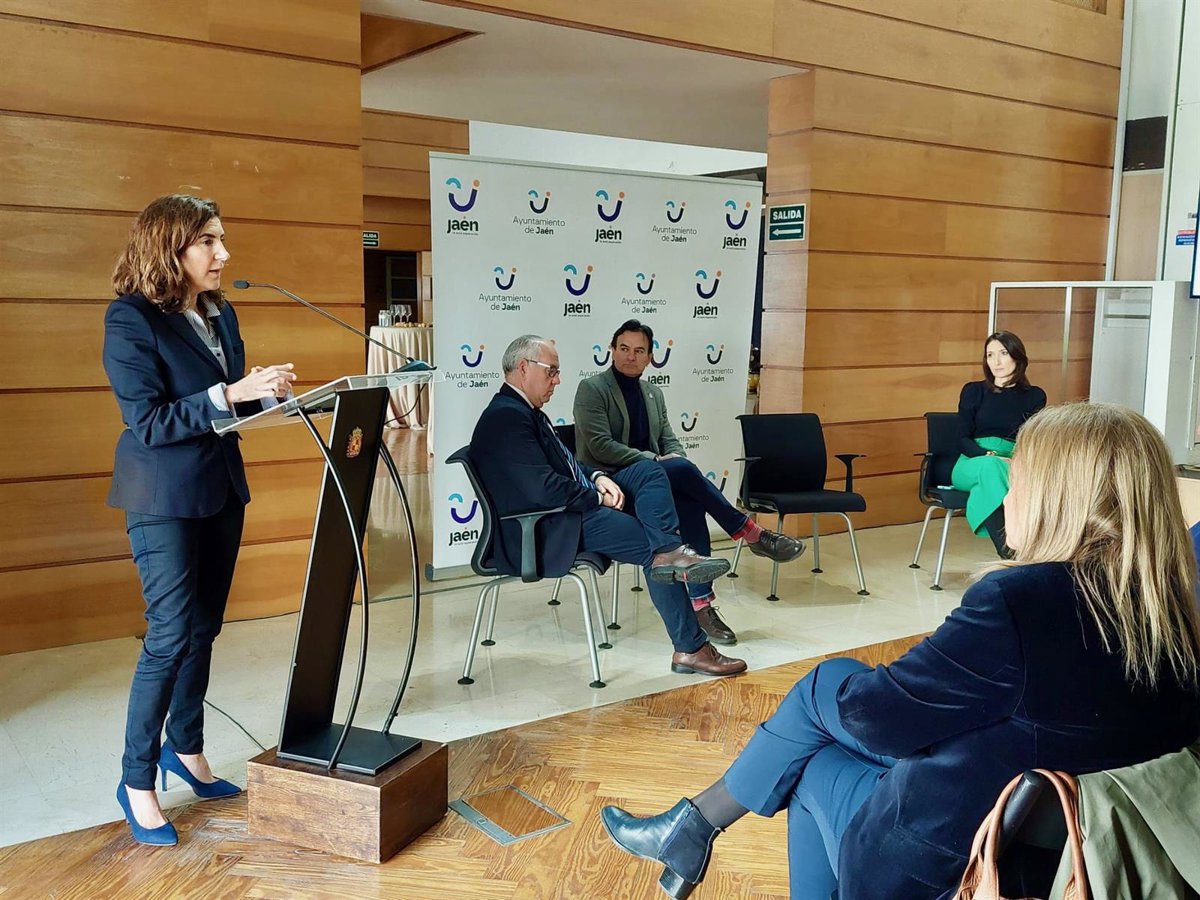 La consejera ha acudido a la presentación de la Concejalía de Presidencia, Autónomos, Pymes y Empresas del Ayuntamiento de Jaén. Lo ha hecho acompañada por el alcalde de la capital jiennense, Agustín González, y por la concejala que estará al frente de la nueva concejalía, Mónica Moreno.