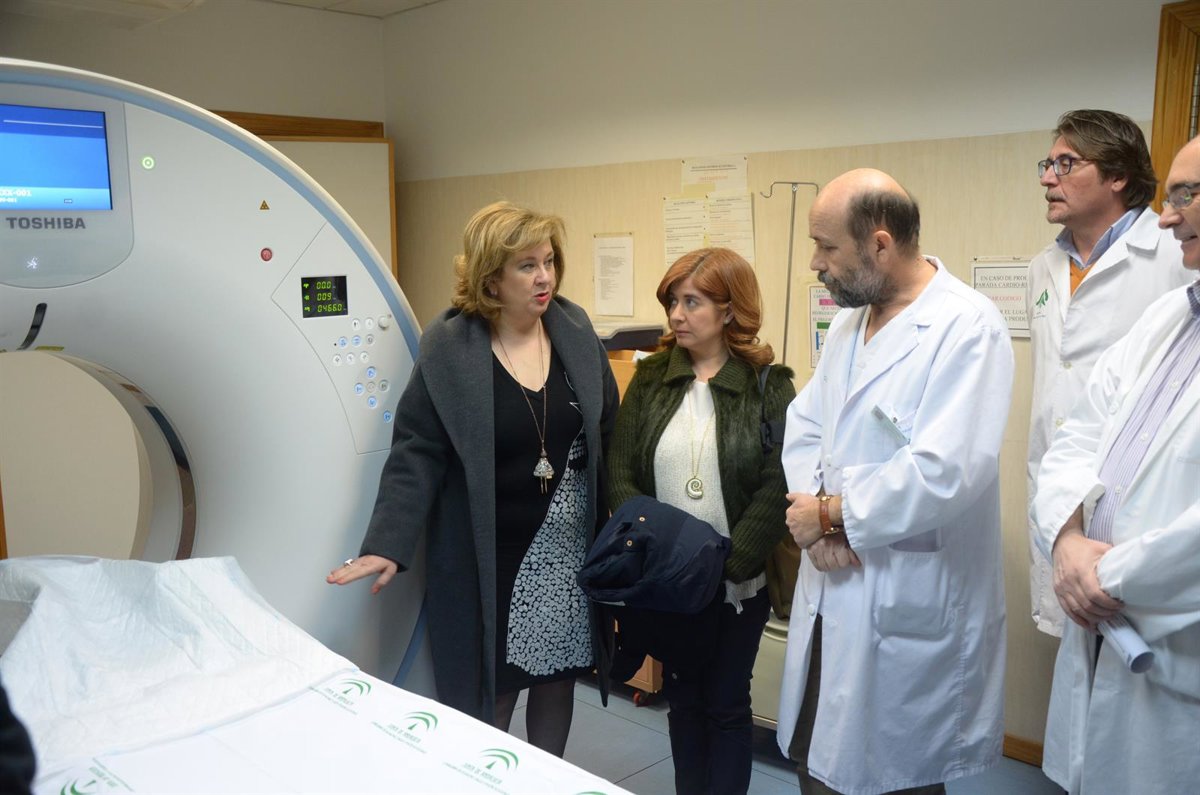 Se trata de una Tomografía Axial Computerizada (TAC), que ha visitado este martes la delegada territorial de Igualdad, Salud y Políticas Sociales, Teresa Vega, junto a la alcaldesa de esta ciudad, Antonia Olivares, y los responsables de este centro sanitario.