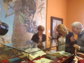 La sala del siglo XX de la Sección de Bellas Artes es el espacio que alberga esta muestra bibliográfica que pretende mostrar de forma rotatoria gran parte de esta colección privada hasta el 31 de diciembre. "Desde hoy se podrán ver los 50 primeros ejemplares acompañados de la obra del pintor malagueño Moreno Carbonero, un cuadro de gran formato con Don Quijote y sus molinos", ha explicado en la inauguración la delegada territorial de Cultura, Turismo y Deporte, Pilar Salazar, en presencia también del coleccionista.