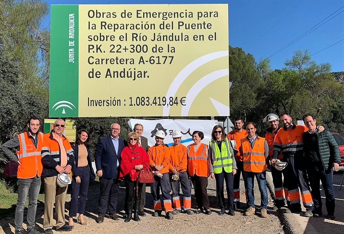 Las obras del puente sobre el río Jándula en Andújar (Jaén) permiten la inserción laboral de cinco jóvenes desempleados, tres de ellos hombres y dos mujeres, gracias a la colaboración de la Consejería de Fomento con Cruz Roja y la empresa adjudicataria de las obras.
