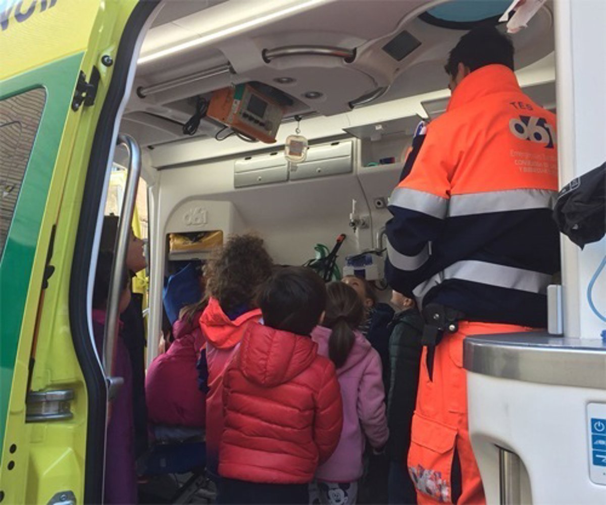 Los cerca de 80 alumnos, en su mayoría de seis años, aprenden junto con sus profesores el funcionamiento de los servicios de urgencias y emergencias sanitarias, cómo prevenir los accidentes de tráfico, así como dónde llamar y qué hacer en el caso de presenciar estas situaciones.