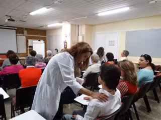 Más tarde, profesionales de la Unidad de Rehabilitación, entre ellas la coordinadora de la unidad de Fisioterapia, Noelia Guerrero, y la fisioterapeuta Sonia Jurado han llevado a cabo talleres prácticos de relajación y liberación de estrés, que les ayudarán en la tarea de cuidar de la mejor forma posible; 'stretching' global activo --estiramiento muscular para corregir la postura y prevenir lesiones--; y sesiones de acupuntura.