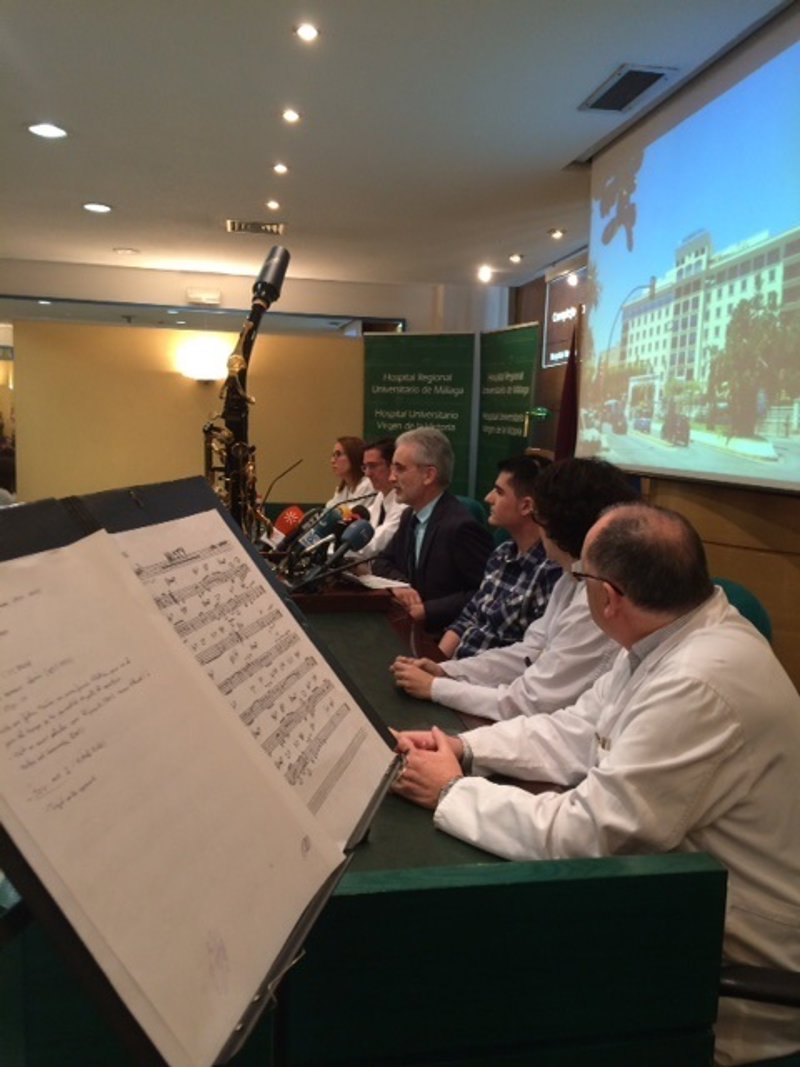Neurocirujanos, neurofisiólogos, neuropsicólogos, anestesiólogos y enfermeros del Hospital Regional Universitario de Málaga han realizado, por primera vez en Europa, una intervención en la que se le ha extirpado un tumor cerebral a un paciente mientras tocaba el saxofón en algunos momentos para evitar secuelas.