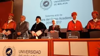 La ceremonia inaugural del acto, que ha comenzado con la lectura del resumen de la Memoria del Curso académica 2015-2016 por parte del secretario general de la UMA, Miguel Porras, ha continuado con una lección inaugural pronunciada por Juan Antonio García Galindo y con los discursos de Narváez y Ramírez de Arellano.
