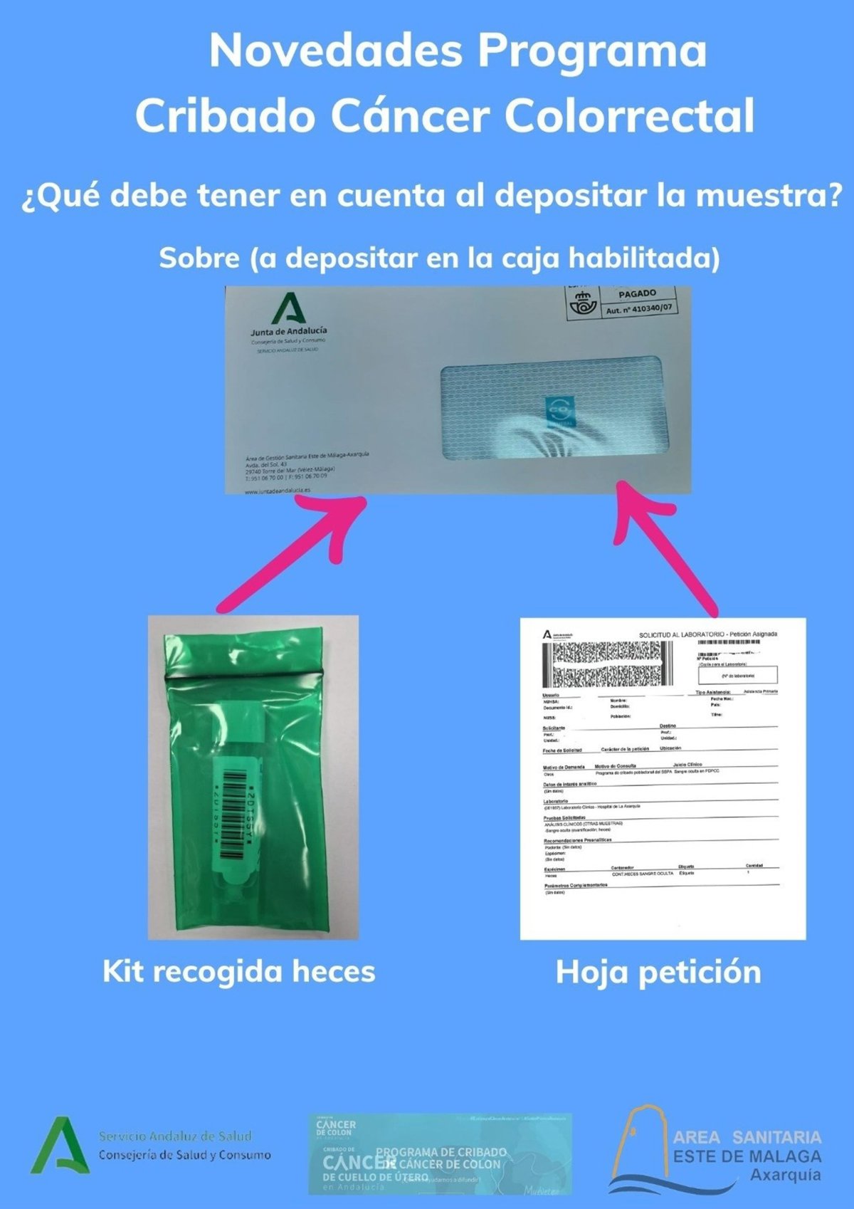 El Área Sanitaria Este de Málaga Axarquía ha ampliado las posibilidades de entrega de las muestras de heces correspondientes al programa de cribado de cáncer de colon, y ha eliminado la necesidad de pedir cita previa.