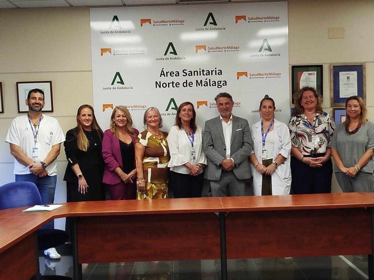 El acto de firma, ha contado además con la presencia de la directora médica del Área, Ángela Bolaños; el director de enfermería, Rogelio García; la subdirectora de Atención Ciudadana, Mar Callejón; la presidenta de la AECC en Antequera, Susana Leruite; la gerente provincial de la AECC, Carmen Litrán, y la responsable de Misión Málaga, Eva Fernández.