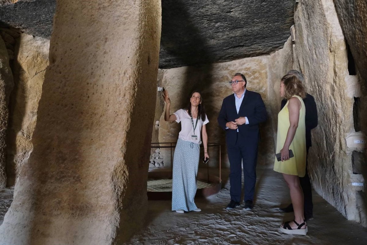 El consejero de Turismo, Cultura y Deporte, Arturo Bernal, ha visitado el Conjunto Arqueológico Dólmenes de Antequera (Málaga), coincidiendo con el séptimo aniversario de su inclusión en la Lista del Patrimonio Mundial de la Unesco.