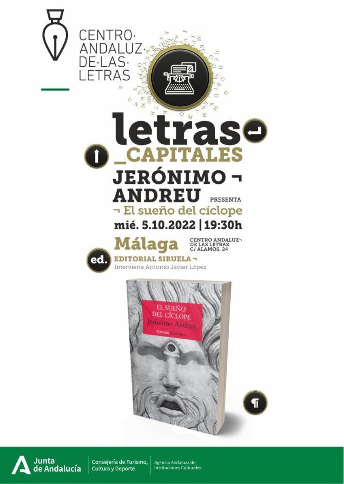 El Centro Andaluz de las Letras (CAL) de Málaga arropará la presentación de 'El sueño del cíclope', el nuevo libro del escritor Jerónimo Andreu.