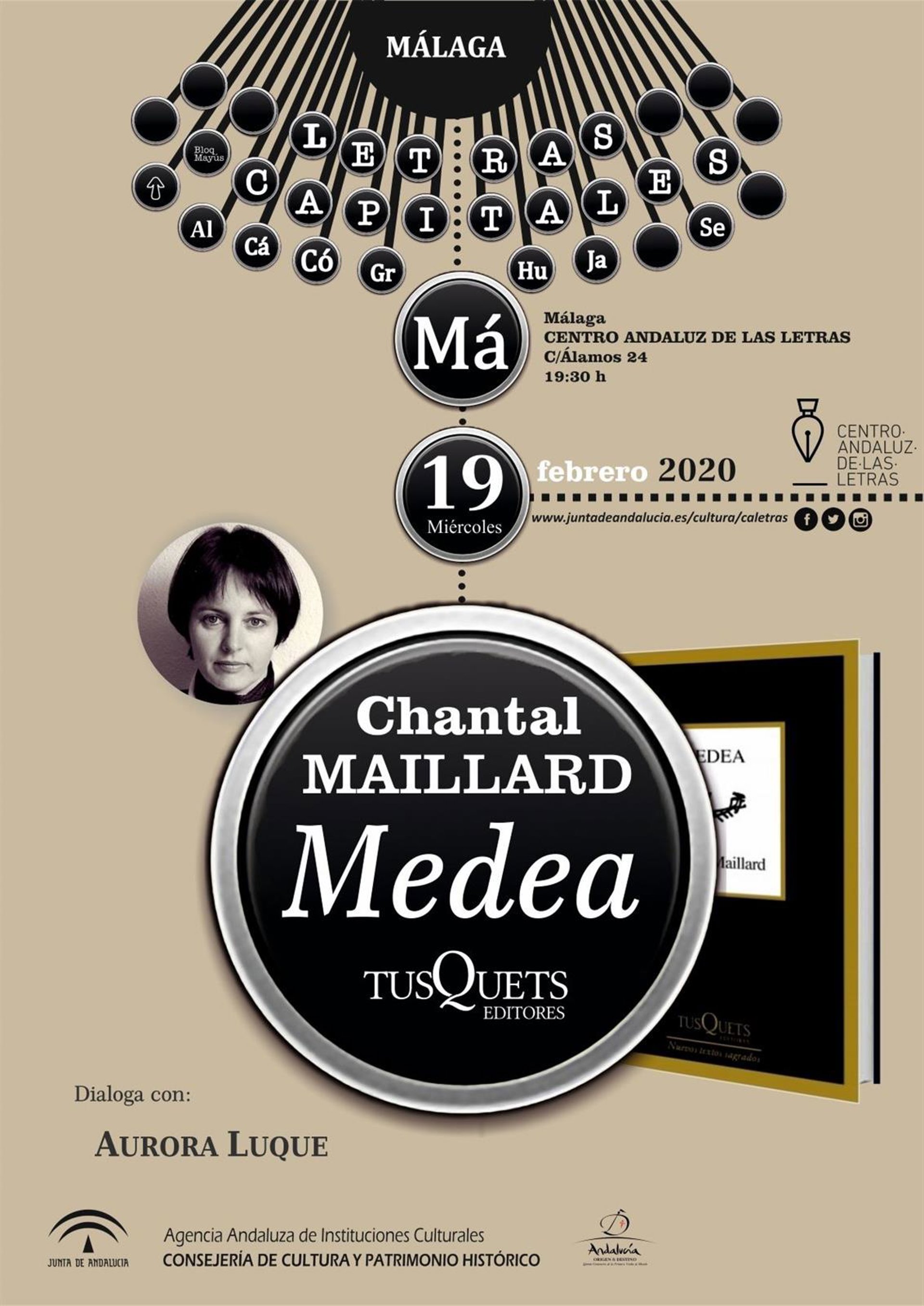 La Consejería de Cultura y Patrimonio Histórico, a través de la Agencia Andaluza de Instituciones Culturales, presenta este miércoles el nuevo poemario 'Medea', de Chantal Maillard, publicado por Tusquets Editores.