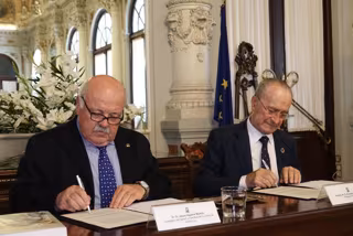 El consejero de Salud y Familias, Jesús Aguirre, y el alcalde de Málaga, Francisco de la Torre, han firmado este lunes un acuerdo de colaboración entre ambas entidades para la puesta en marcha del proyecto Red Local de Acción en Salud (Relas) en la ciudad de Málaga, con el objeto de impulsar a nivel municipal actuaciones de prevención, protección y promoción de la salud.
