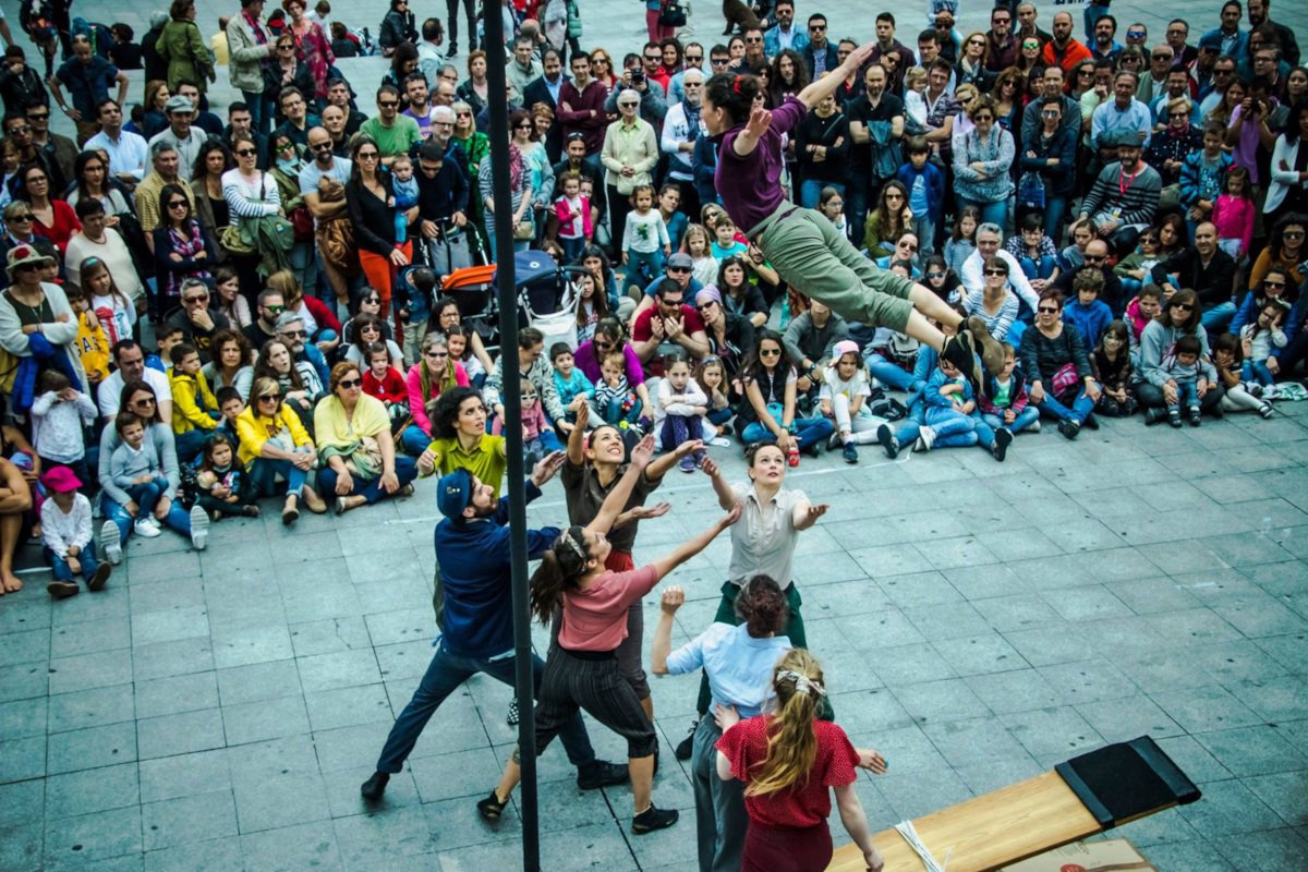 Los vecinos de San Pedro Alcántara, núcleo poblacional de Marbella (Málaga), reciben este jueves en el Boulevard a los integrantes de la compañía internacional Faltan7, que representarán su espectáculo 'Express', ganador de un premio Feten 2019.