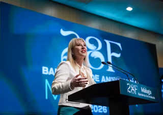 "No pedimos más que nadie, pero no aceptamos menos de lo que nos corresponde cuando hablamos del sistema de financiación. Por ello, alzamos la voz para pedir con serenidad, pero también con firmeza inquebrantable, respeto y justicia para los andaluces", ha manifestado España en el acto de entrega de las Banderas de Andalucía en Málaga.