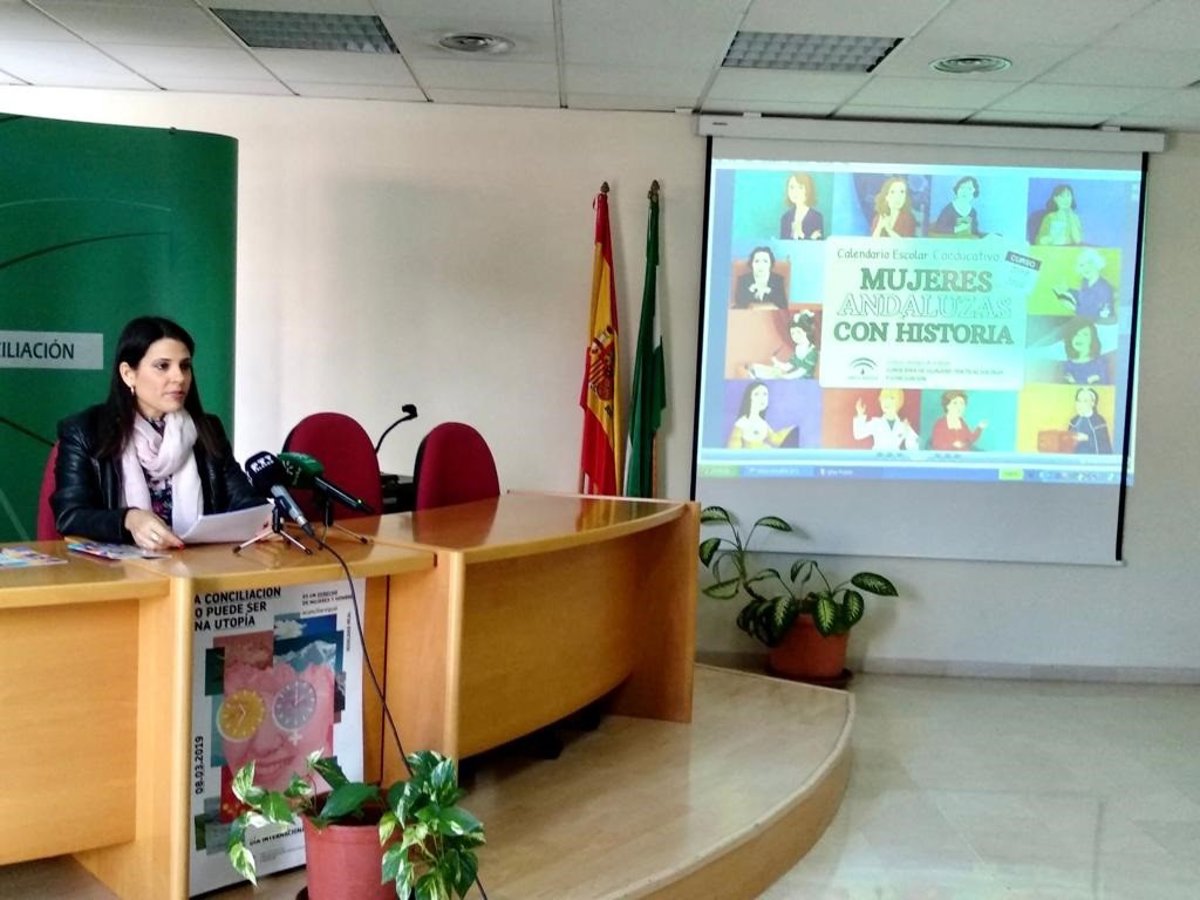 La asesora de programa del Instituto Andaluz de la Mujer (IAM) - en Málaga, María Encarnación Santiago, ha presentado este martes el calendario coeducativo 'Mujeres andaluzas con historia' para el curso 2019-2020 donde se da visibilidad a mujeres relevantes y referentes de Andalucía. Desde el IAM se ha hecho una selección de 12 mujeres que abarcan distintos ámbitos. El calendario de pared incorpora además un cuadernillo con propuestas de actividades didácticas para el profesorado.