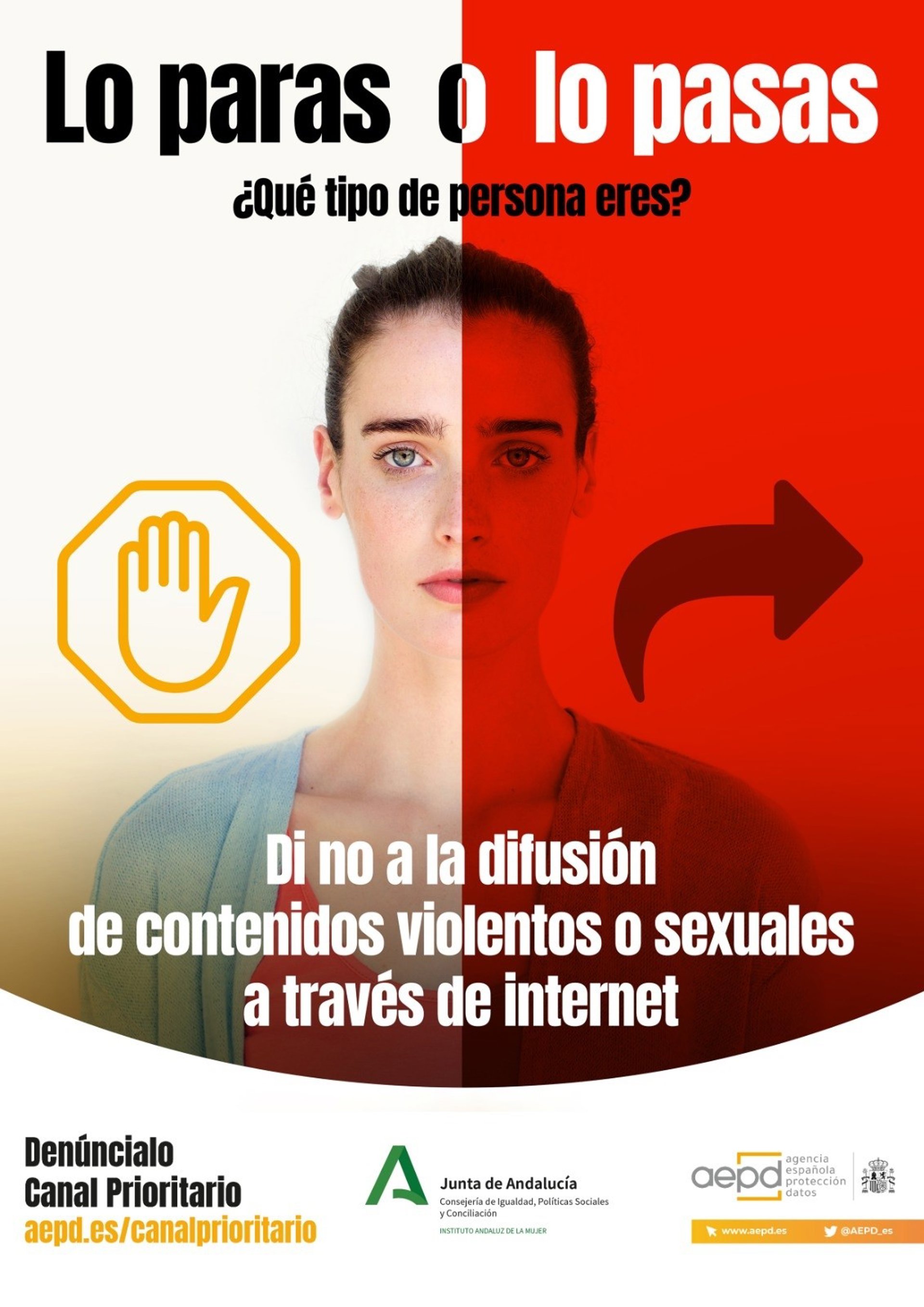 La Consejería de Igualdad, Políticas Sociales y Conciliación, a través del Instituto Andaluz de la Mujer, ya colaboró con la Agencia Española de Protección de Datos con la difusión de la campaña 'Puedes pararlo'. En 2020, la AEPD recibió 358 peticiones de retirada de contenidos sexuales o violentos a través del Canal Prioritario y la efectividad en la retirada de contenidos se situó en torno al 86 por ciento.