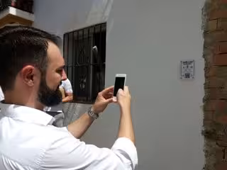 A lo largo del recorrido por las calles del municipio, ambas autoridades, acompañadas por familias del pueblo, han ido encontrando placas identificativas del proyecto, instaladas en las fachadas de las casas, con un código QR que se puede escanear con un dispositivo móvil, el cual enlaza con la web para visualizar una foto antigua que les muestra la situación de esa misma calle más de 50 años atrás, pudiendo conocer así, rincones y situaciones de la vida diaria de la época.