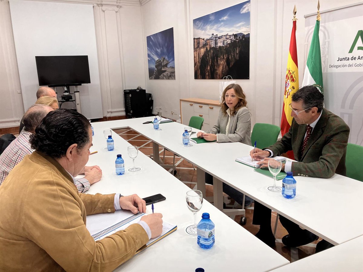 La delegada de la Junta de Andalucía en Málaga, junto al delegado de Agricultura, Pesca, Agua y Desarrollo Rural, Fernando Fernández, ha analizado con los representantes de Asaja, UPA, COAG y Cooperativas Agroalimentarias las actuaciones que han correspondido a la provincia malagueña, donde se han invertido desde 2019 más de 304 millones de euros en políticas de agua y donde se han centrado en gran medida los tres decretos de sequía aprobados por la Junta, con una inversión de 55 millones de euros específicamente para la Axarquía, la zona más perjudicada por la ausencia de lluvias.