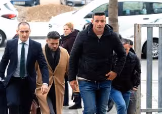 El propietario de la finca de Totalán llega la Ciudad de la Justicia de Málaga acompañado de sus abogados para el juicio. Enero de 2020. - Álex Zea - Europa Press - Archivo