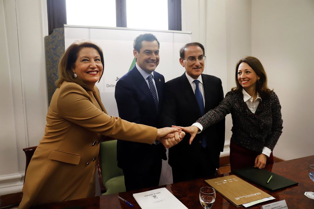 Los presidentes del Gobierno de Andalucía, Juanma Moreno, y de la Confederación de Empresarios de Andalucía (CEA), Javier González de Lara, han firmado este martes un protocolo de colaboración para que las organizaciones empresariales promuevan medidas para eliminar las bolsas de plásticos ligeras y muy ligeras, excepto las compostables, a lo largo de este año; adelantándose así al 1 de enero de 2021, cuando entra en vigor la prohibición europea de uso de los plásticos de un solo uso.
