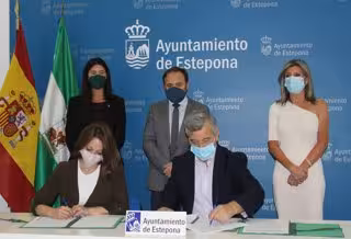 La delegada del Gobierno andaluz en Málaga, Patricia Navarro, y el alcalde del municipio malagueño de Estepona, José María García Urbano, han rubricado este martes el convenio mediante el cual se formaliza la recepción por parte de la Junta de Andalucía de una parcela cedida por el Ayuntamiento para la construcción de la nueva sede judicial de la localidad, un proyecto que ya cuenta con una partida en el presupuesto autonómico de 2021 de 239.992 euros para licitar la redacción del proyecto de la nueva sede.