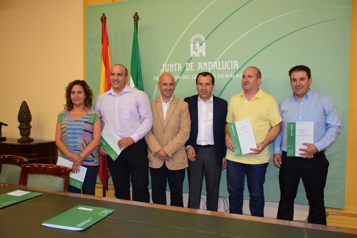 El delegado del Gobierno andaluz, José Ruiz Espejo, ha mantenido un encuentro este jueves con el delegado territorial de Agricultura, Pesca y Desarrollo Rural, Javier Salas, así como los alcaldes de Alozaina, Casaraboneal y Periana, Antonio Gómez, Antonio Campos y Rafael Torrubia, respectivamente, así como representantes municipales de Riogordo, para la firma de la recepción de obras de dichos caminos.