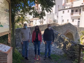 La delegada territorial de Turismo en Málaga, Nuria Rodríguez, ha visitado este miércoles el municipio malagueño de Salares, donde ha conocido el estado de los trabajos que se han realizado con cargo a la subvención que ha concedido la Consejería y que ha permitido la iluminación del puente romano y la señalización de una ruta turística en la localidad.