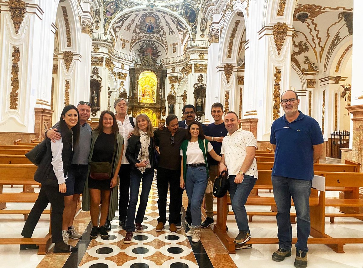 La delegación internacional organizada por TRADE, a través de Extenda, ha comenzado hoy en Málaga con la visita a la Iglesia de los Santos Mártires de la capital, que ha sido recientemente restaurada con mármol almeriense.