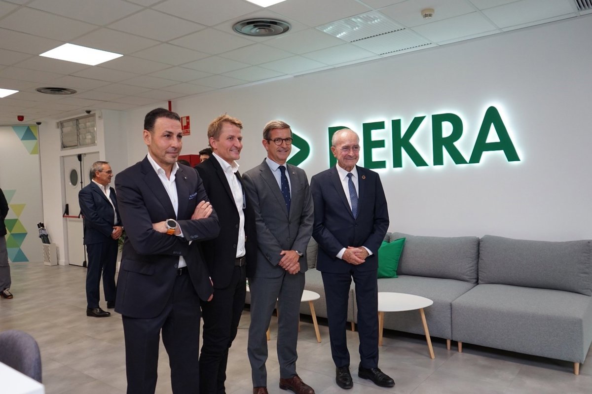 El consejero Jorge Paradela junto al alcalde de Málaga, Francisco de la Torre, y el director de la ADA, Raúl Jiménez, ha asistido a la inauguración del laboratorio de ciberseguridad de componentes electrónicos de la compañía Dekra. - JUNTA