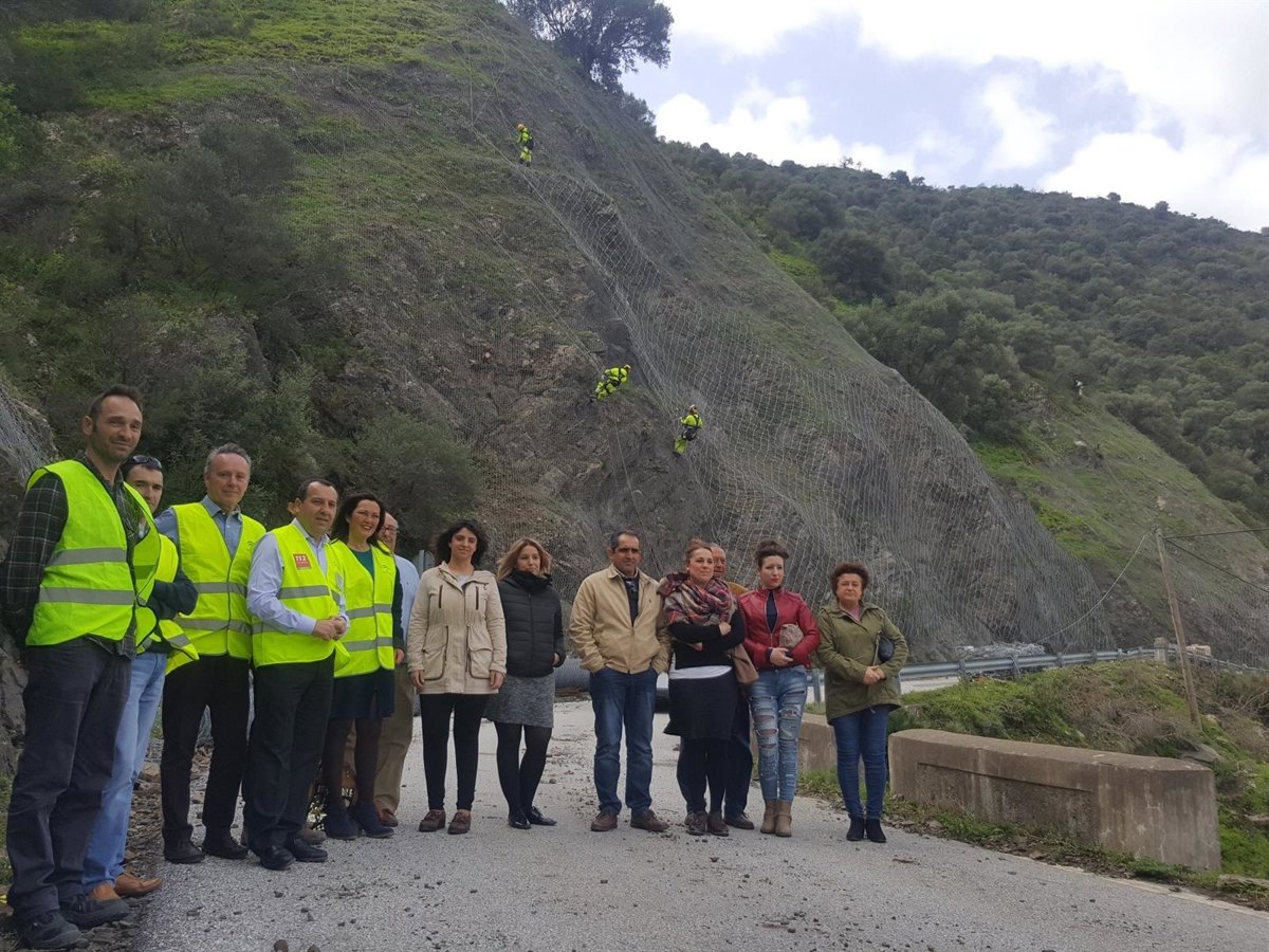 El delegado del Gobierno andaluz, José Luis Ruiz Espejo; el delegado territorial de Medio Ambiente y Ordenación del Territorio, Adolfo Moreno, y la alcaldesa accidental de Álora (Málaga), Sonia Ramos, junto a miembros de la corporación municipal han visitado este jueves las obras de mejora del camino que une Álora con el Caminito del Rey y que ejecuta la Consejería de Medio Ambiente y Ordenación del Territorio, que invertirá en esta actuación 937.000 euros.