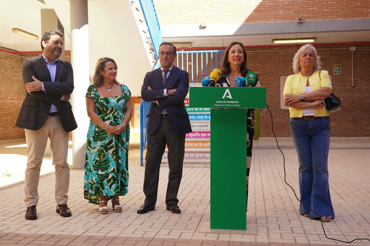 Acompañada por el delegado territorial de Desarrollo Educativo y Formación Profesional y de Universidad, Investigación e Innovación, Miguel Briones; la concejala del distrito Cruz de Humilladero, Teresa Porras, y la directora del centro, Sandra Páez; Navarro ha celebrado que este nuevo curso comienza con un refuerzo en la plantilla docente a nivel autonómico y provincial.