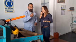 La delegada territorial de Justicia, Administración Local y Función Pública, Teresa Pardo, junto al alcalde de El Borge, Raúl Vallejo, durante una visita al Centro Cultural de Interpretación de la Pasa. - JUNTA