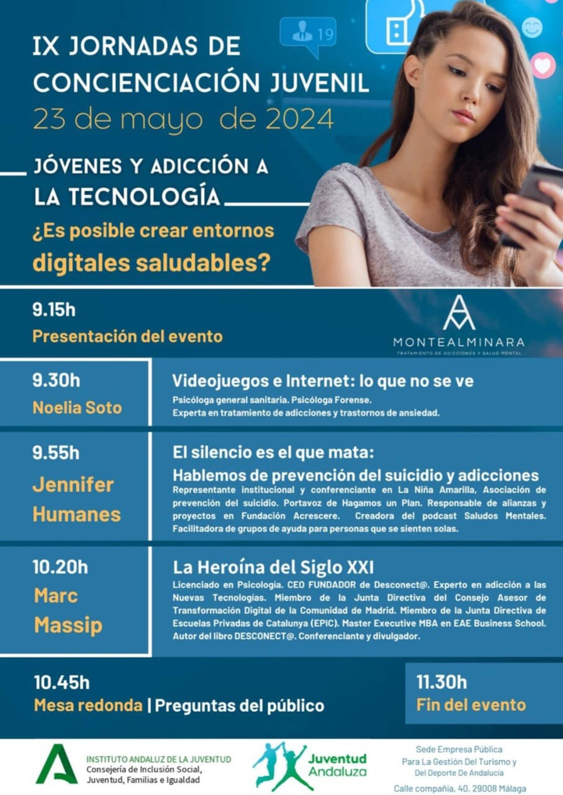La sede de la empresa pública para la gestión del Turismo y Deporte de la Junta de Andalucía en Málaga acoge el próximo 23 de mayo las IX Jornadas de Concienciación Juvenil frente a la Adicción a las Nuevas Tecnologías.
