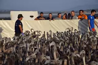Más de 500 personas han participado en el anillamiento de pollos de flamenco que ha tenido lugar este año en la Reserva Natural Laguna de Fuente la Piedra, en Málaga, en una jornada en la que se ha marcadao a más de 600 animales.