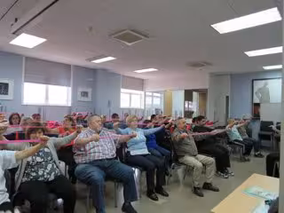 Tras la charla, la sesión continuará con una hora de entrenamiento aeróbico de baja intensidad, que se iniciará con ejercicios sentados en sillas, centrados en extremidades superiores, inferiores, tronco y cuello y en la que también participa la monitora de fitness María Soledad Rodríguez.