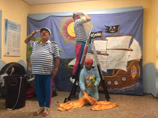 Los niños ingresados en la unidad de Pediatría del Hospital Costa del Sol han asistido a la representación de la obra de teatro 'Florentina y la isla del tesoro verde' gracias a la colaboración altruista de la compañía Osmara Teatro.