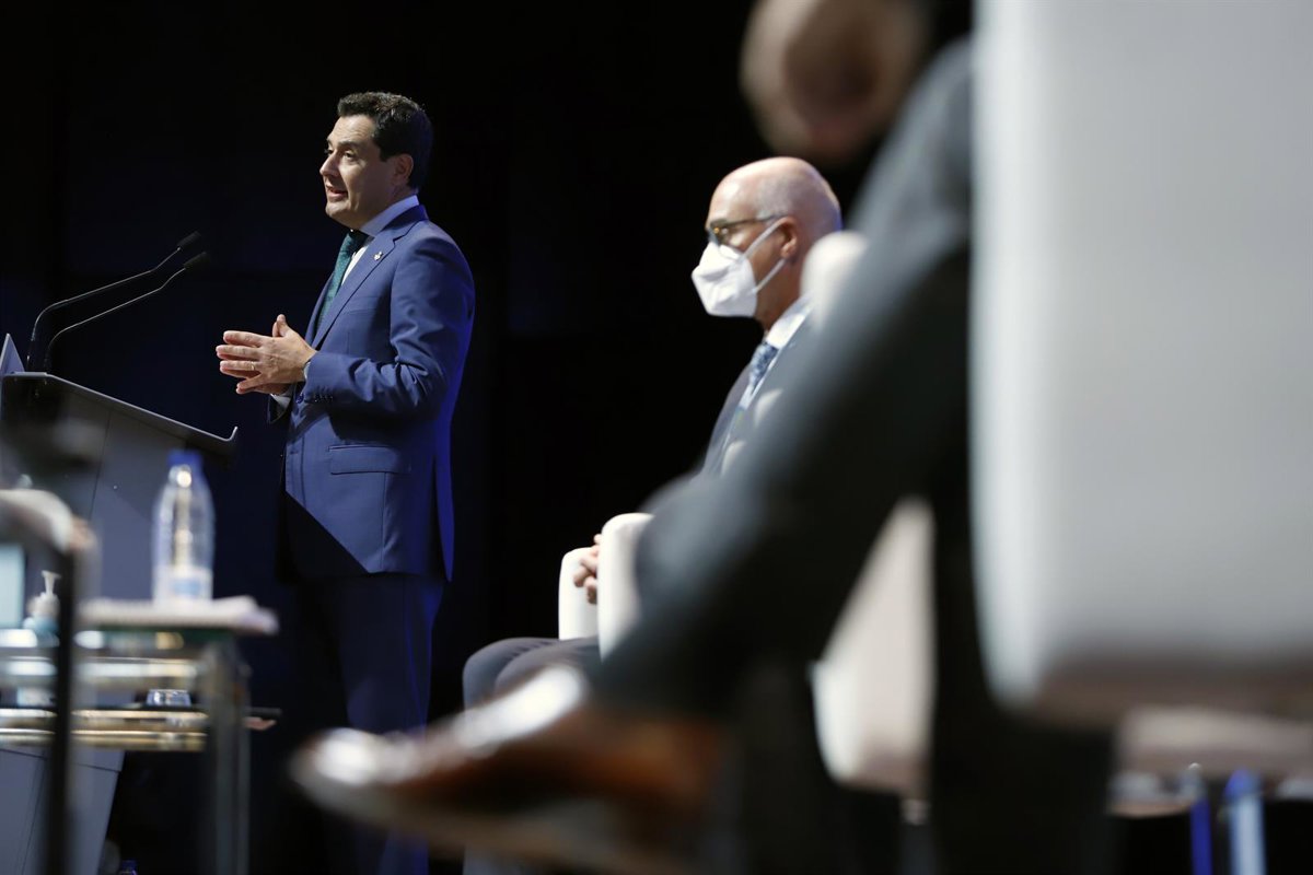 El presidente de la Junta de Andalucía, Juanma Moreno, interviene en el 22 Congreso Nacional de Hospitales y Gestión Sanitaria a 16 de septiembre del 2020 en Málaga (Andalucía) - Álex Zea - Europa Press